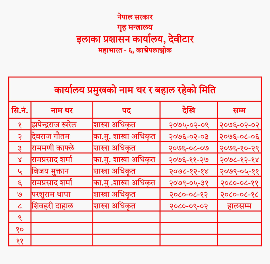 जिल्ला स्थित कार्यालय प्रमुखहरुको विवरण
